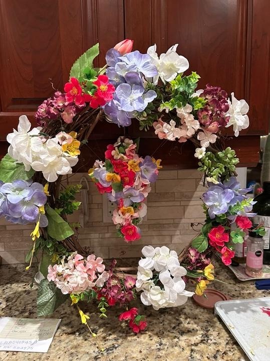 A grapevine wreath and a small wooden cross which will be hanging in the middle of the wreath has been purchased to replace the heavy flower cross that we have used in years past. The cross is already covered in bright flowers. Artificial flowers have been glued in place on the wreath leaving room for the real flowers that parishioners will bring to church on Easter Sunday. (Congregants are welcome to use the artificial flowers that will be on hand). It is much lighter than our previous flower cross and will not need the waterlogged oasis which made the former flower cross very heavy. So, remember to bring some flowers on Easter Sunday and perhaps say a prayer as you place your flower on the wreath.